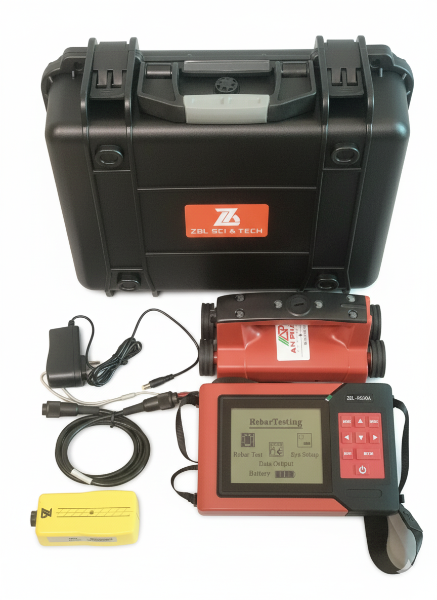 Máy định vị cốt thép ZBL-R630A là thiết bị kiểm tra không phá huỷ di động, có thể được sử dụng để đánh giá chất lượng xây dựng của kết cấu bê tông cốt thép. Nó có thể phát hiện vị trí thanh thép trong bê tông, phát hiện độ dày lớp bê tông bảo vệ thép và đường kính cốt thép.
