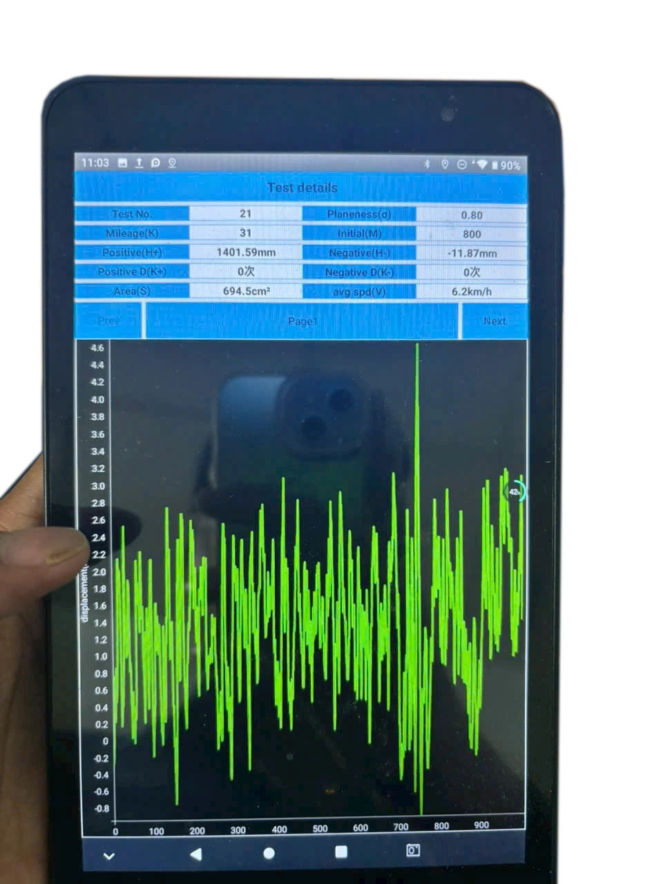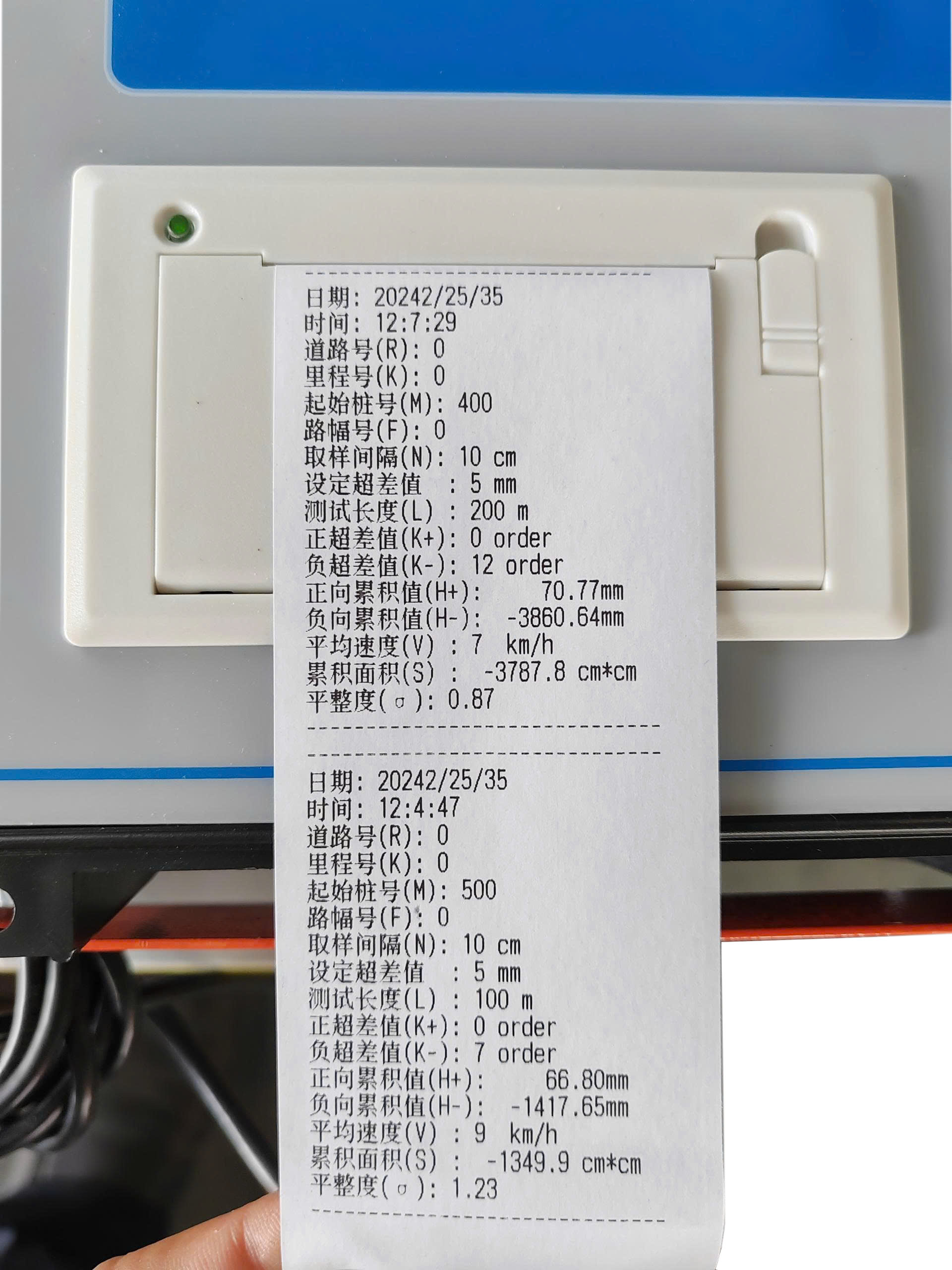 - Bằng dữ liệu thủ công, có thể tự động in ngày kiểm tra (năm tháng) và số đoạn đo (số đường, số dặm, số cọc, số chiều rộng đường, cài đặt ngoài dung sai, khoảng cách lấy mẫu) mỗi lần in, số tóm tắt tự động thêm một hoặc trừ một.
