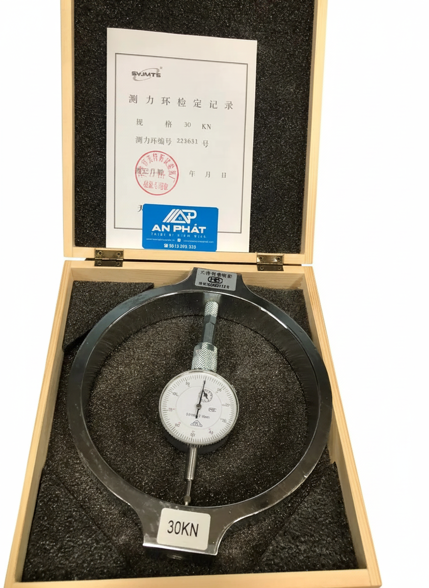 – Vòng đo lực 30KN là dụng cụ dùng để lực nén, được dùng trong các máy nén CBR, máy nén Marshall, thí nghiệm CBR hiện trường,,,